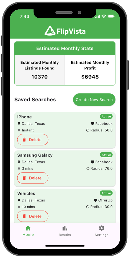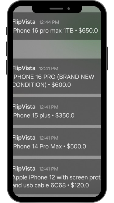 Flip Vista automatically scans listings and instantly alerts you when listings appear. Skip the manual refreshing and never miss a great deal — get notified the moment it goes live!