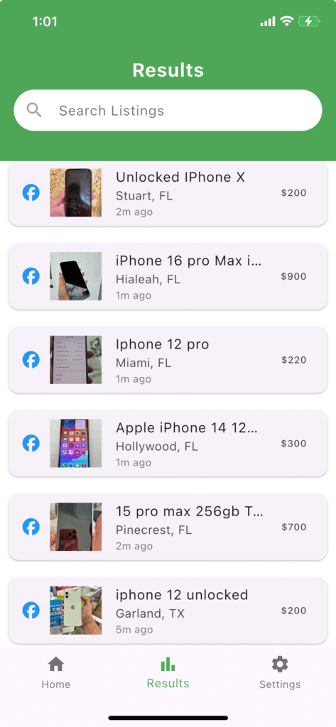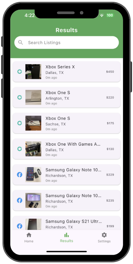 Get instant notifications as soon as items are posted on Facebook Marketplace and OfferUp.